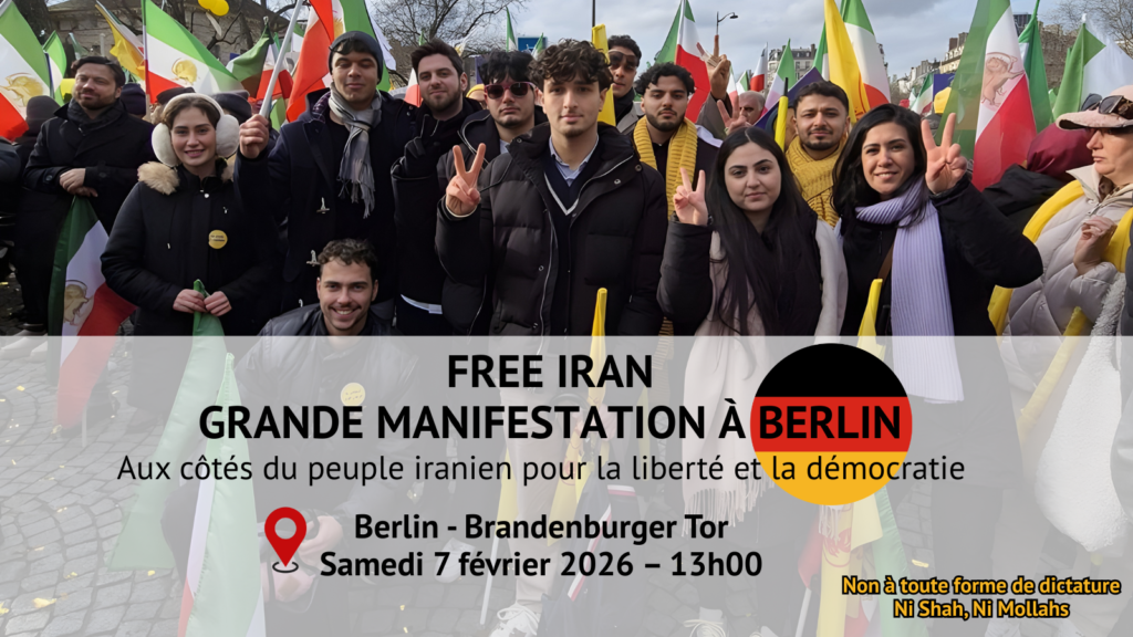 24/01/2026 À l’occasion de l’anniversaire de la révolution de 1979, plus de 300 associations iraniennes appellent à une mobilisation massive sur la place de la Porte de Brandebourg à Berlin. Ce rassemblement vise à soutenir le soulèvement en cours et à rejeter fermement toute forme de dictature, qu’elle soit religieuse ou monarchique.